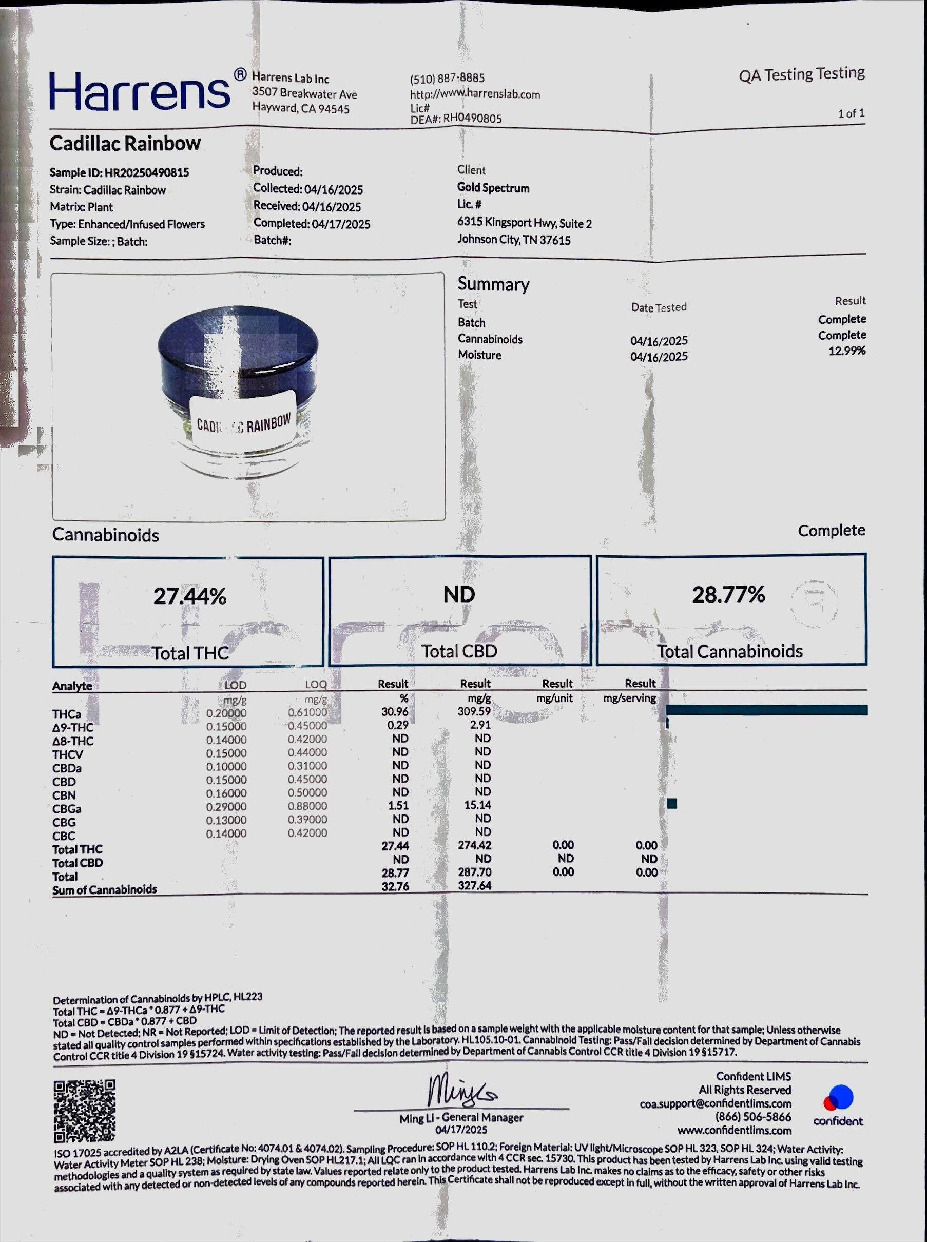 THCA Flower Cadillac Rainbow COA (jpg)Download